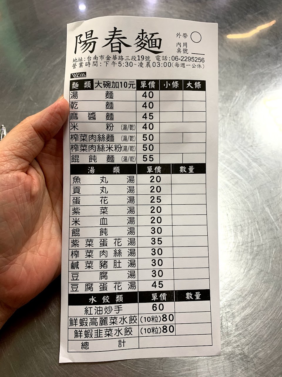 2024最新在地推薦餐廳的菜單_陽春麵的菜單、圖片