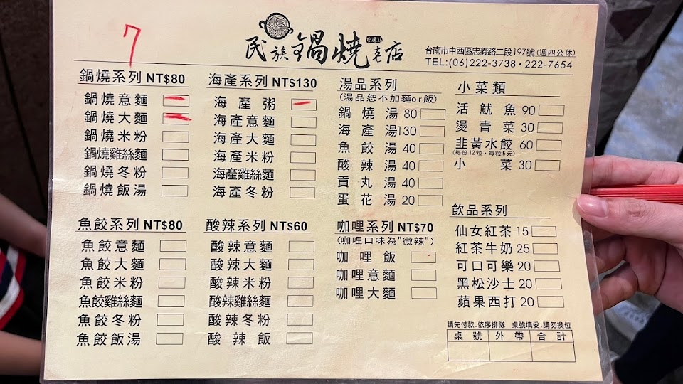 裡面老闆到員工服務超級親切,以前在赤崁東街就常去吃,打聽到換店面,馬上去吃。燙魷魚必點,新鮮彈牙。鍋燒意麵真的好吃,裡面兩隻炸蝦,炸魚肉都很甘甜。