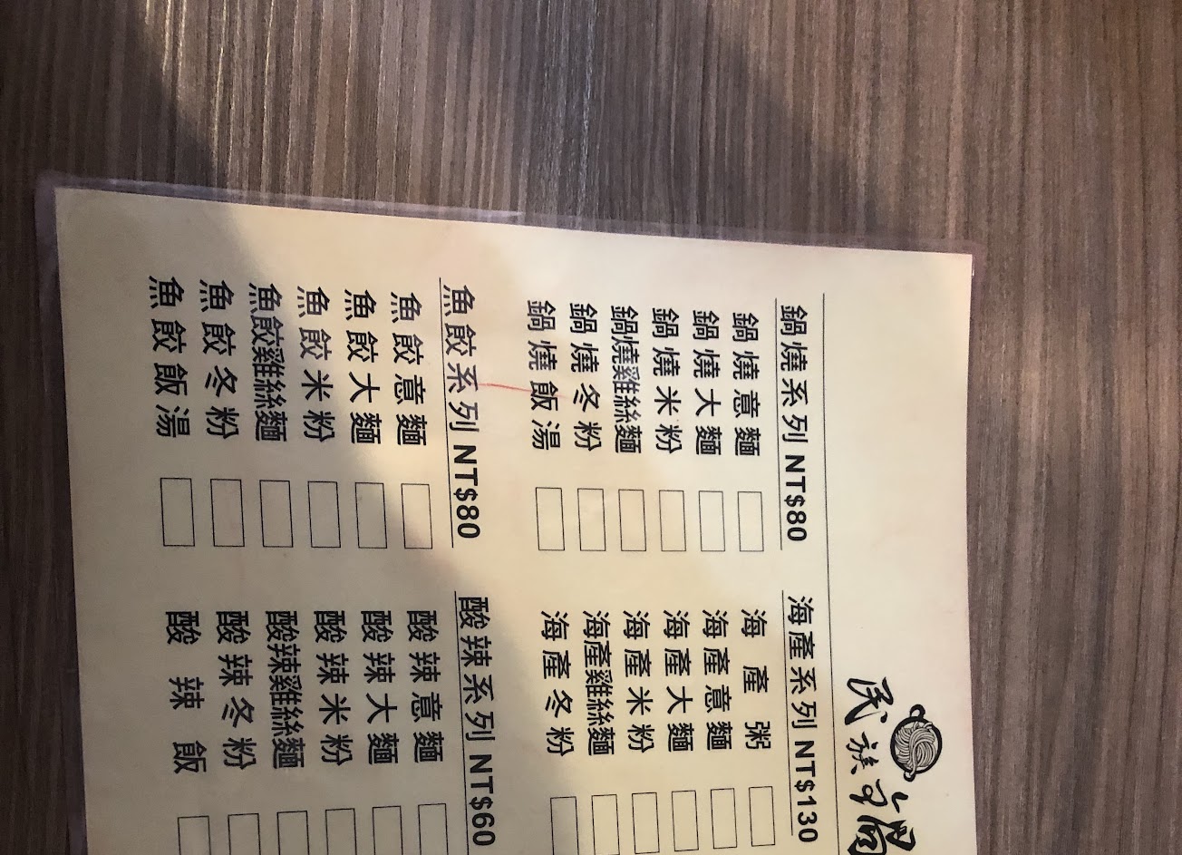 在等待時先畫好菜單,店家會幫忙安排座位。小菜每盤30元,因為時間比較晚,小菜的選擇比較少,點餐後付款。