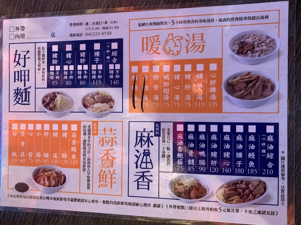 平日快接近六點的時間,外帶了一份麻油腰子冬粉,腰子處理的很好沒腥味,湯沒有血水的渣渣,湯的調味適中,味道夠又順口。如果可以內用就不要外帶,好吃到想立馬加點? 建議內用~~
