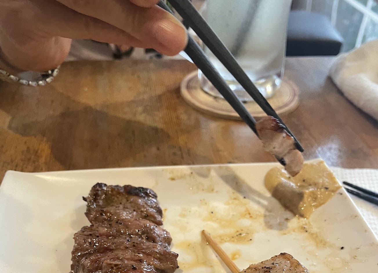 燒烤熟度非常到位,刷醬調味剛剛好,有很多平常沒吃過的部位,最後收尾的甜點法式吐司,很好吃