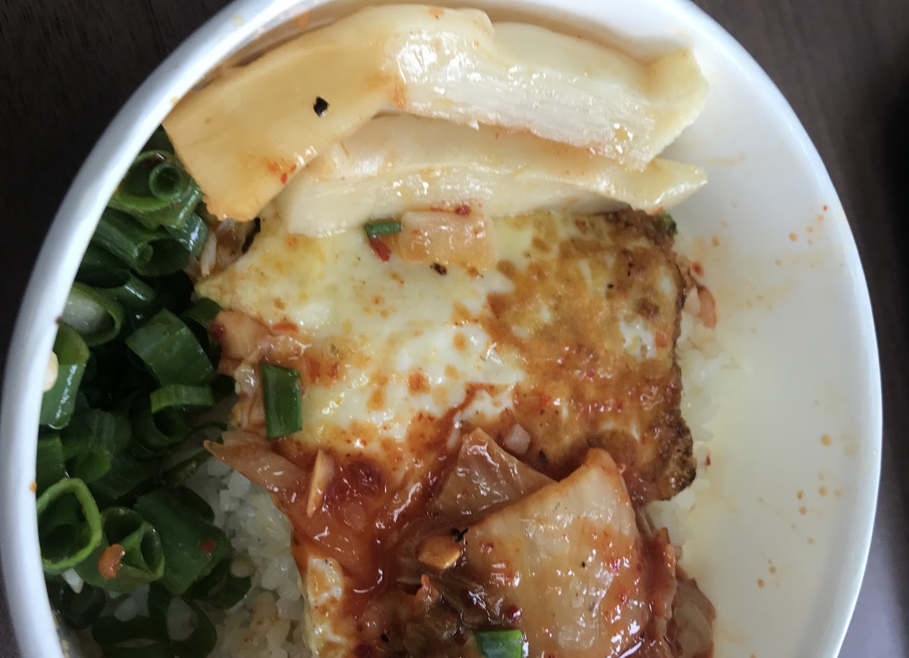 燒肉飯很普通,泡菜跟筍乾都像是罐頭的