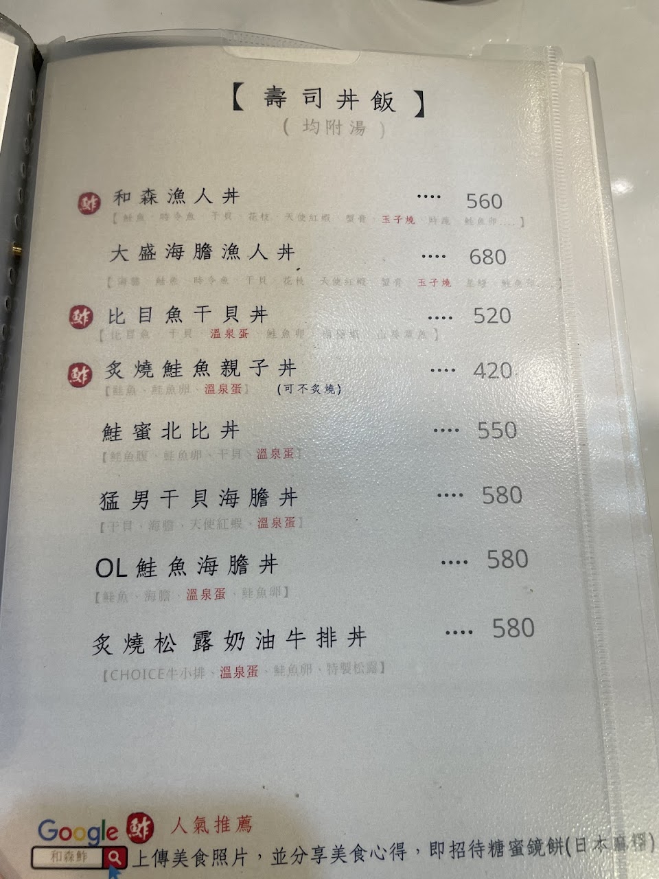 2024最新在地推薦餐廳的菜單_和森鮓 日本料理/握壽司/丼飯/定食/燒物的菜單、圖片