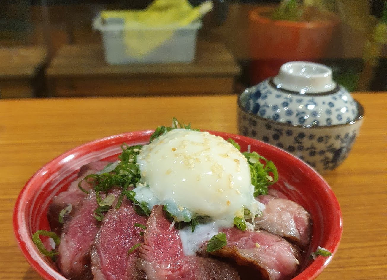 老闆的面容讓我再次感受到初戀的感覺(超粉紅牛排丼)~開玩笑的,我是想說料理真的很好吃,繼續加油!個人感覺牛排肥油部份能再去除些!謝謝好吃的麻糬招待!