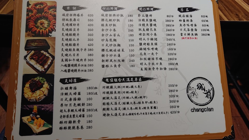 每日特色餐點會寫在黑板上,炙燒干貝握用的是昆布醬油香氣迷人,干貝本身炙燒過老口感略顯粗糙,鮭魚握一樣有炙燒過老導致口感粗糙問題而且並無魚油香氣,鮭鰻丼中的蒲燒鰻魚口感Q彈香氣迷人但鮭魚生肉口感上無任何油質香氣,炙燒的位置也無香味,總體吃下來食材普通但金額偏高的個人感受。