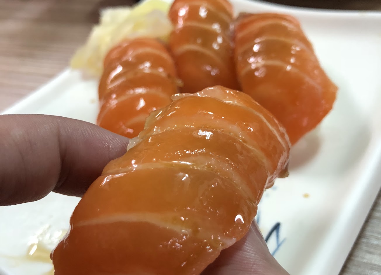 吃了生魚的鮭魚跟炙燒的鮭魚?,最喜歡炙燒的口感,炙燒後油脂分佈在口腔裡化開,香氣十足,好吃(ง •̀_•́)ง