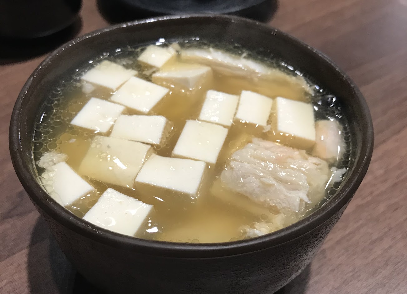 那個可以無限自己撈的裡面很多魚塊的味噌湯 讓我非常愉快