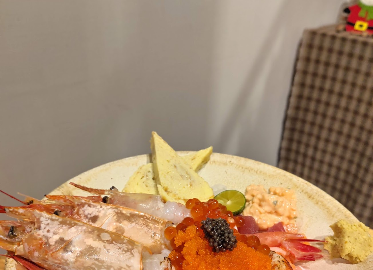 味增湯好喝,料多。 點了爆蝦丼,看的出來海鮮品質不錯,鮭魚卵大顆,溫醋飯也不錯。 魚料跟溫醋飯的比例有點失調,到底是老闆料給太多,還是溫醋飯給太少,吃到最後只剩海鮮。