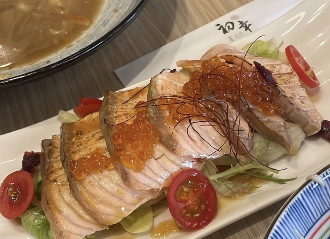 中高價位的日本料理店,鮭魚親子炒飯滿好吃的,炒飯口感偏濕潤。另外點了綜合壽司,共八貫,生魚片頗大片,味道也很不錯。內用座位不算多,整體頗乾淨整潔