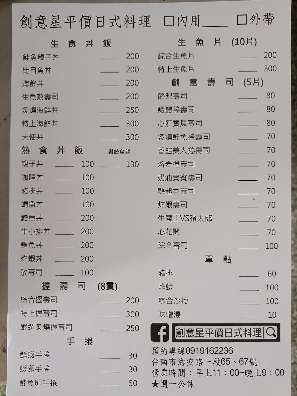 2024最新在地推薦餐廳的菜單_創意星平價日式料理的菜單、圖片