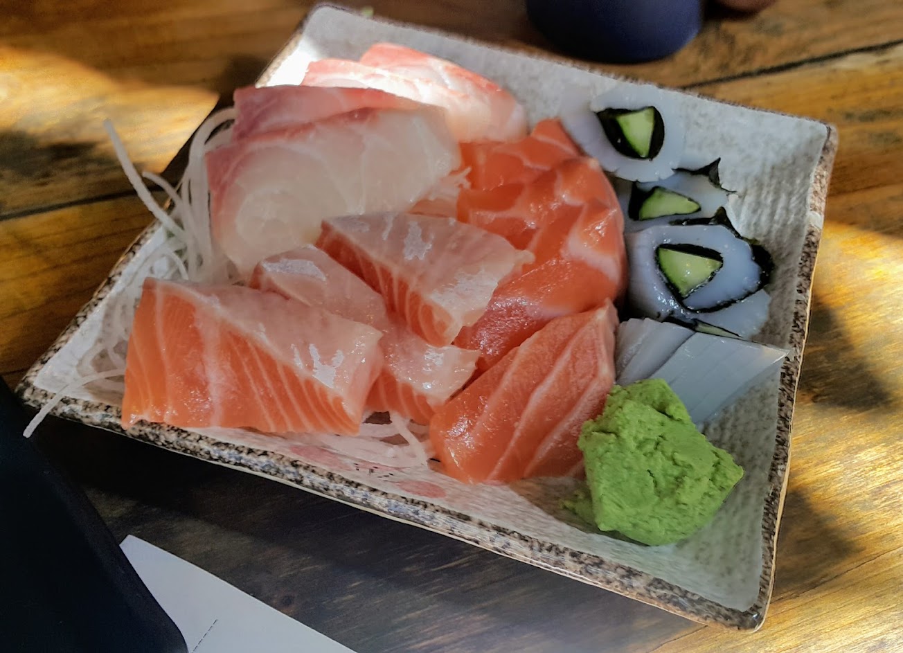 綜合生魚片 魚本身還算新鮮,但山葵很明顯是用調出來的。