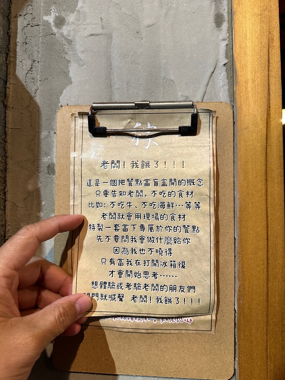 老闆跟闆娘很親切,很好聊,所有餐點現點現做,菜單就像看盲盒一樣,決定價錢,今天想吃飽一點?或是好一點?接下來就是坐等給老闆處理?