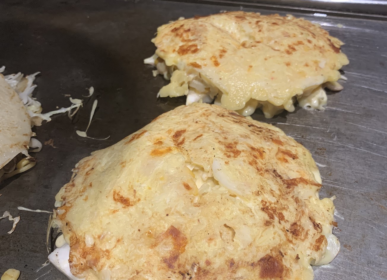人氣半熟蛋起司麻糬 個人覺得和蛋跟醬汁拌一起仍然味道偏淡 我自己是把麻糬再蓋上廣島燒一起吃 像是融化的起司口感?滿棒的 …