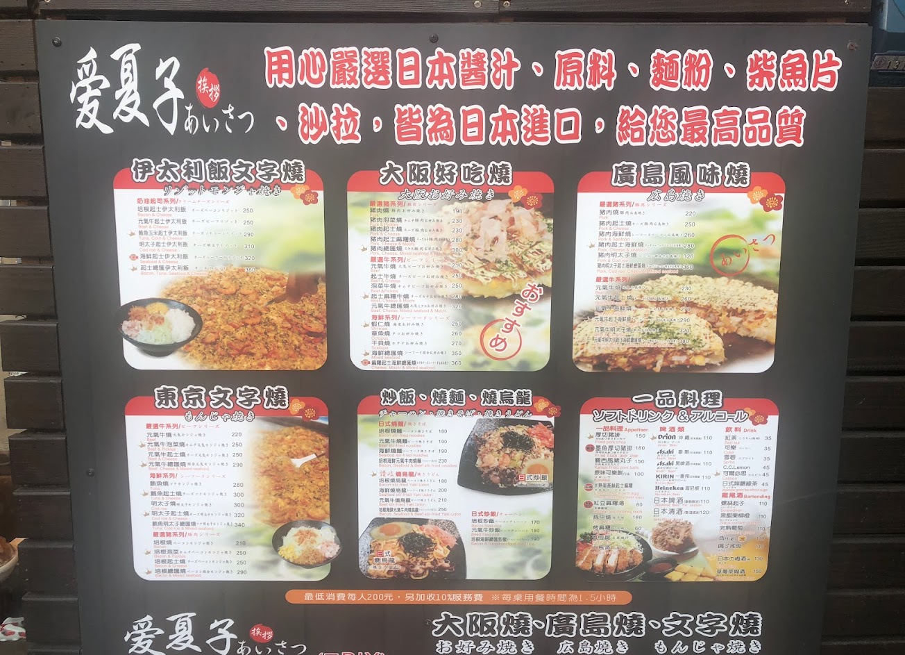 沒計畫路過臨時決定進來,生意很好沒訂位要等,入口不在正面,要走旁邊的巷子進去,很有趣,店員是穿著和服,滿滿的日本味點了墨魚厚切豬排、大阪燒,文字燒(會作成一個I❤️I造型很可愛),牛肉炒飯,都很好吃?,一家人吃的很滿足,下次來台南再來吃 服務 內用