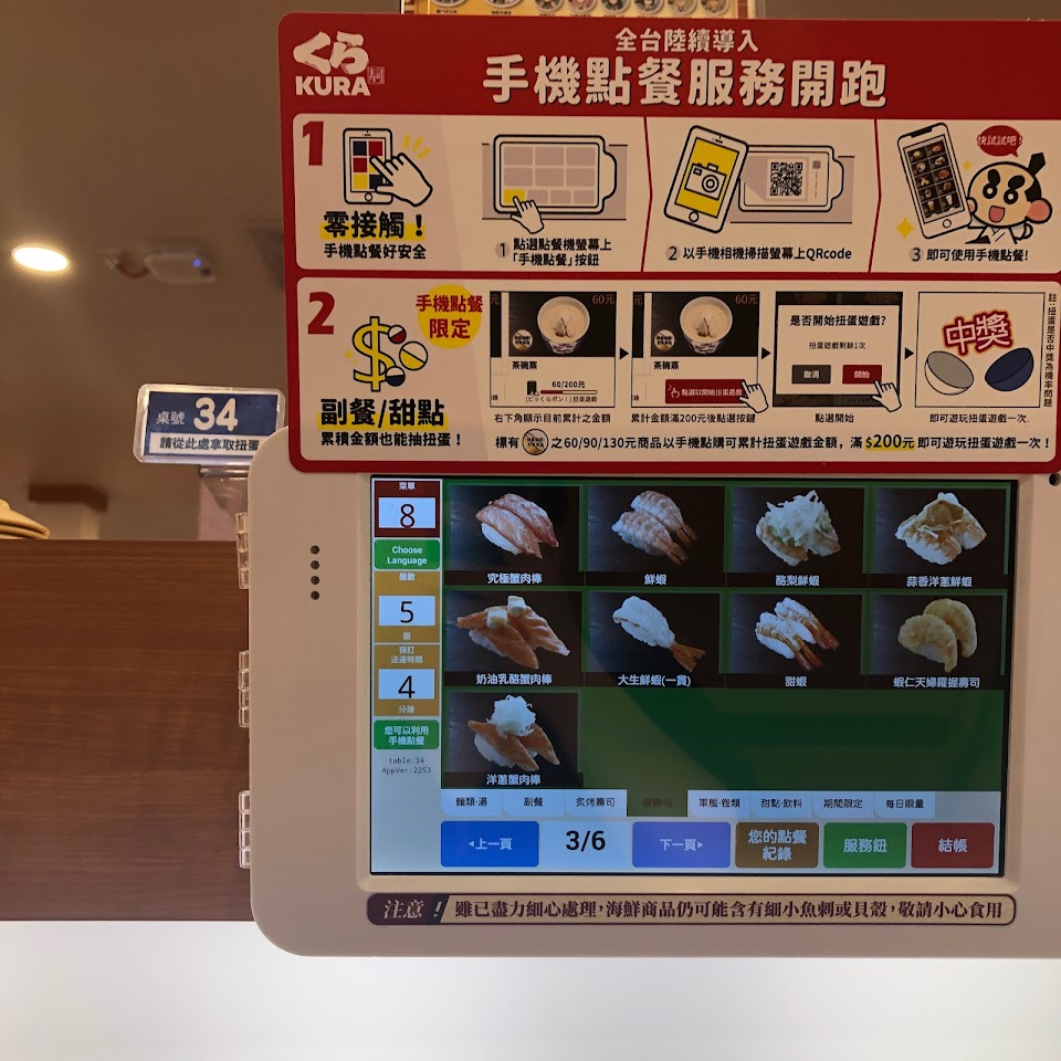 點餐用餐方式與別家相同,每吃5盤可玩扭蛋一次,我每次幾乎都中^_^。