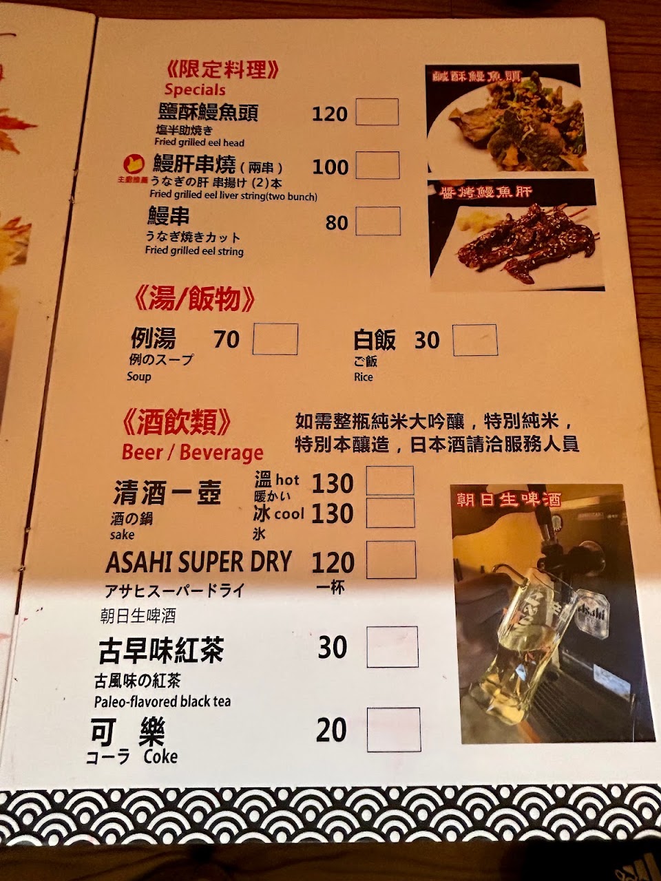 因為很懷念日本的鰻魚三吃,看到剛好這間店有就進來踩了,鰻魚飯很不錯,醬汁有到位,吃一半再加入配菜和高湯就變成拌飯和茶泡飯了,追加點的串燒也不錯