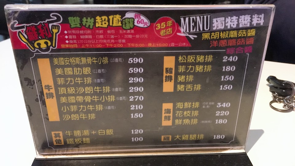 台南傳統的牛排館(老店),從小吃到大到底好不好吃,就不用多講了。