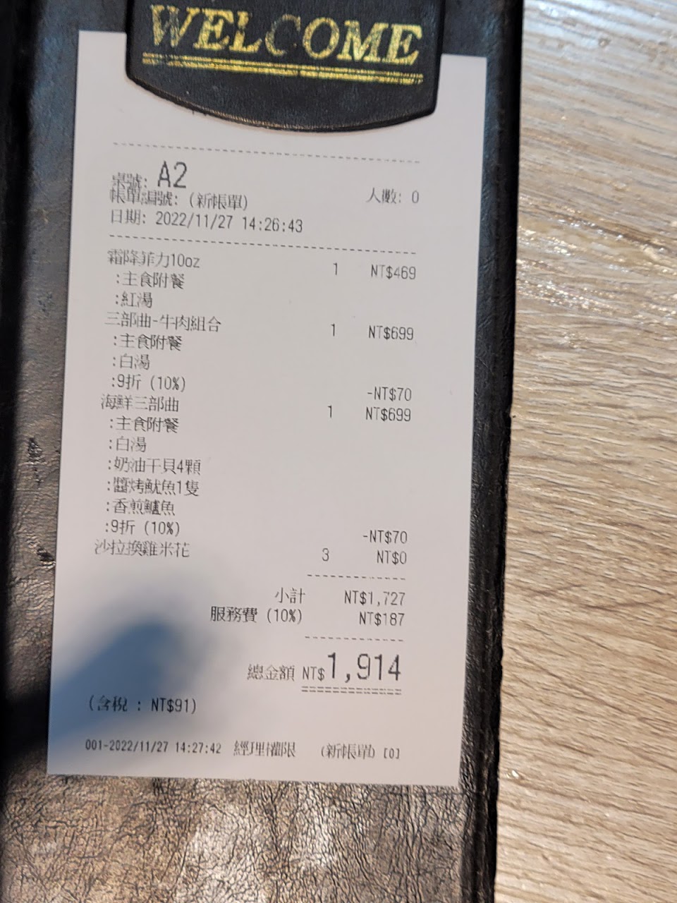 非常失望,牛排煮得太熟了,不好吃……而且還很貴……