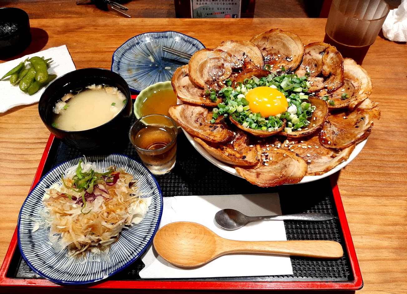 環境乾淨舒適,音樂好聽,店員親切,水蜜桃紅茶超好喝,小菜很美味且多樣,而且補上的速度很快 餐點的部分 叉燒和牛排的調味適中 且牛排超級讚,外香酥內軟嫩 蛋黃熟度剛好搭上蔥配飯既不生又有特殊的蛋香 套餐配的果醋非常貼心也非常好喝,有了這個吃了整碗的肉,胃也不會不舒服