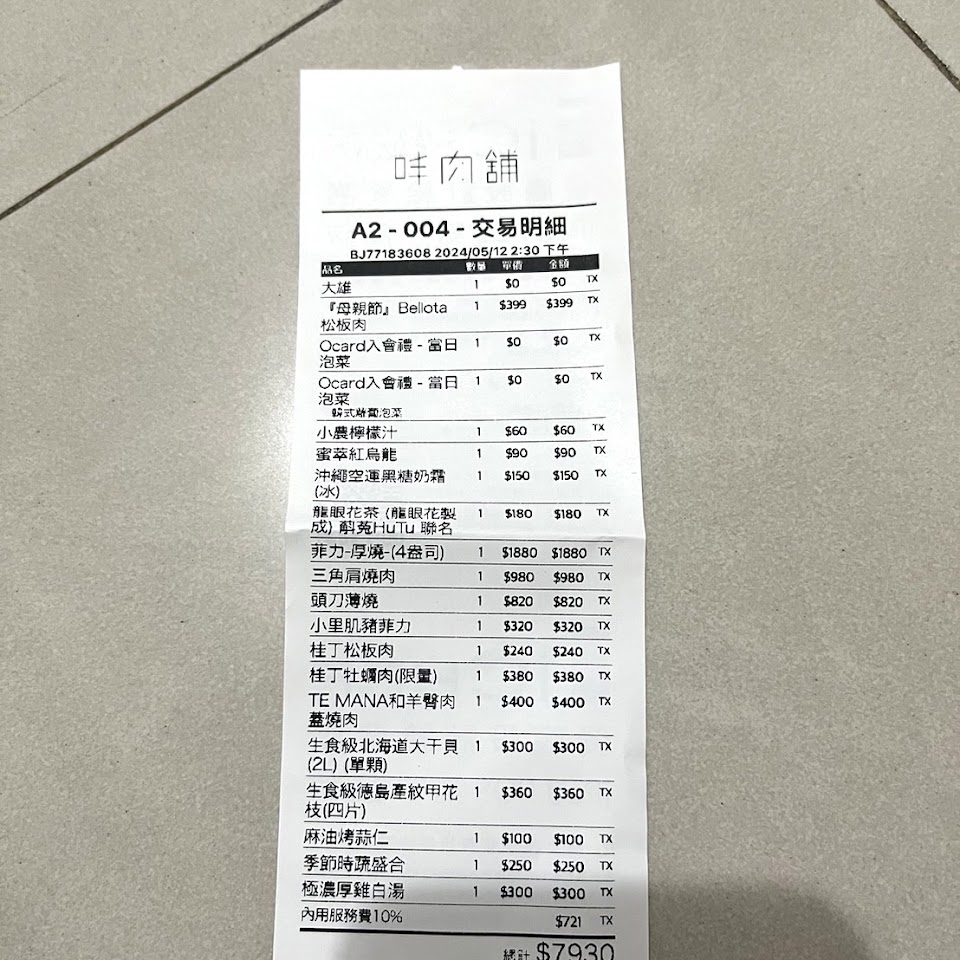 店內人員代烤專業,加上親切的講解,吃飯氣氛很輕鬆,非常推薦牛舌,還有個人非常喜歡牛小排,油脂豐富入口即化,瘦肉的部分頭刀的口感也很棒,每天賣的部位不同,值得再回訪品嚐?
