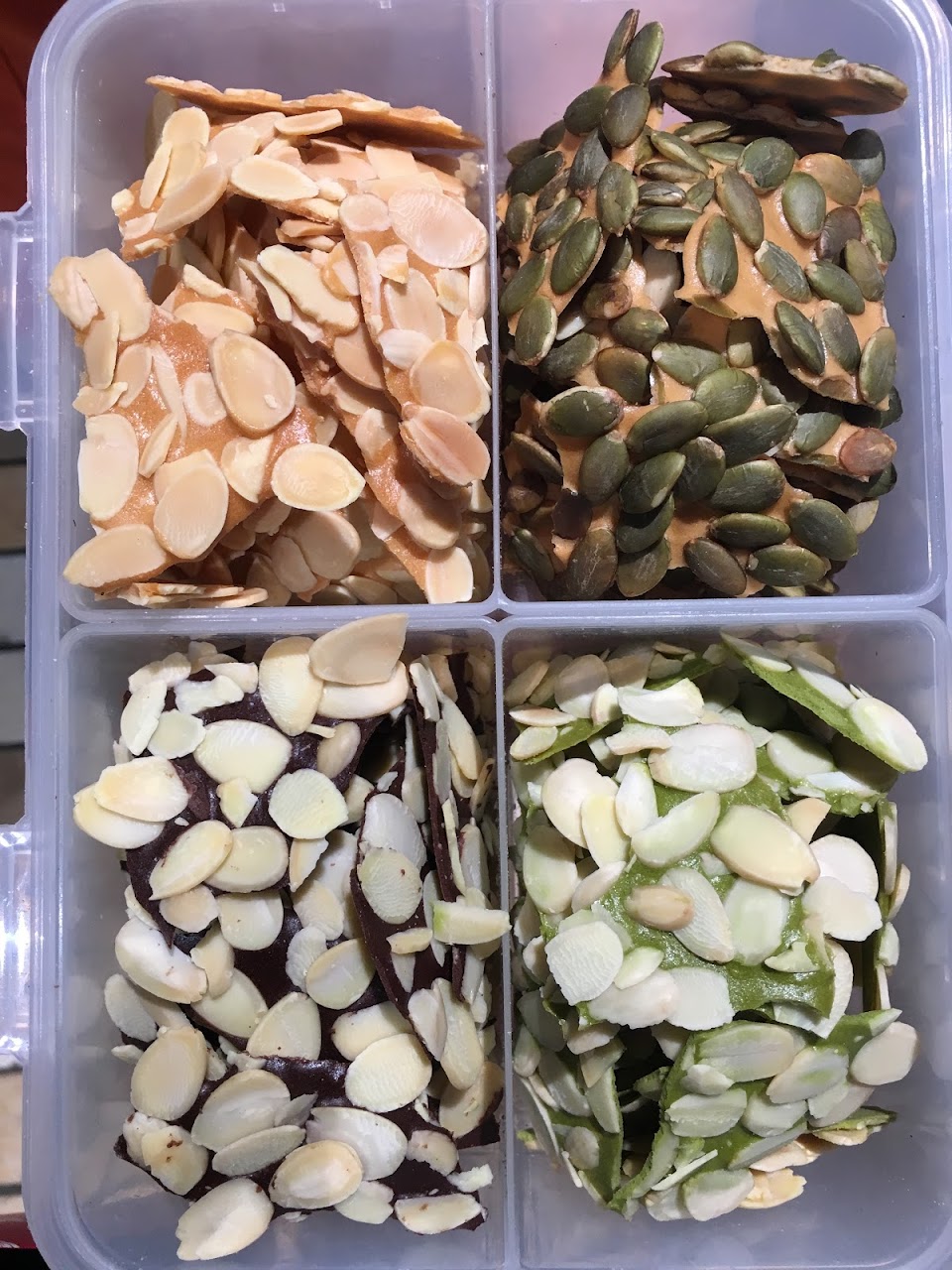 堅果和杏仁瓦片都會棒,巧克力瓦片沒有太多調味就很好吃