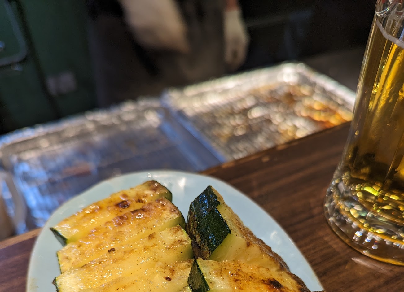 烤功很厲害的小店!特別推薦烤鴨肝配麵包、烤櫛瓜、烤香菇、烤透抽,烤得恰到好處,蔬菜的水份都還保留著。烤松阪豬也不錯,但相形之下感覺沒有到非點不可的程度