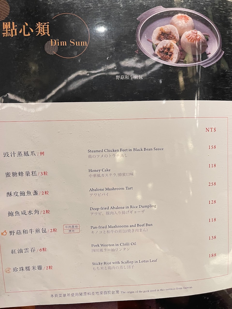 在新天地的一樓 港點吃起來真的都很棒很好吃 價格算偏高 但會發現來吃的人也會有一定水準 最推就是港式腸粉 蝦子彈牙 油條脆口 外皮軟嫩 芝麻糕是吃到最有記憶點的食物 吃起來很Q彈又軟嫩 重點是熱熱的吃 芝麻味道超濃郁 第一次吃到這種口感的芝麻甜品 蘿蔔糕比較屬於偏門味道 味道跟平常吃到的真的差很多 沒有到不好吃 但比較不順口 脆皮叉燒包的叉燒內餡吃起來也還不錯 外皮就普普通通 鳳爪下面有蒸芋頭陪襯 芋頭沒什麼調味有點可惜 鳳爪吃起來也還不錯 但沒有到特別驚豔