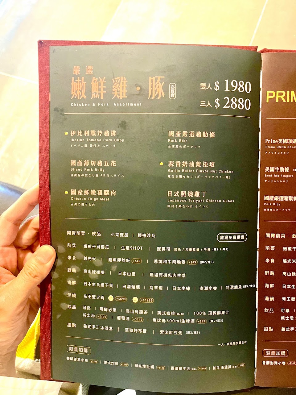 這次點選單人獨享套餐(A/B) 肉質有讓我驚艷到,每種肉都很嫩好吃,量也不少? 副餐的鮭魚卵炒飯,香氣十足,調味可以? 店內氣氛環境不錯? 加點的火鍋味道稍淡,但有玫瑰鹽可以加,蔬菜味道煮出來後湯頭很鮮? 稍嫌可惜的就是套餐蔬菜盤的蔬菜較少,無酒精選擇較少 值得回訪?