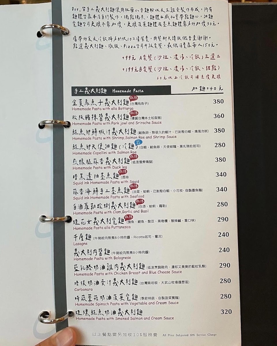 2024最新在地推薦餐廳的菜單_Dor,留手工義大利麵(友愛街店)的菜單、圖片