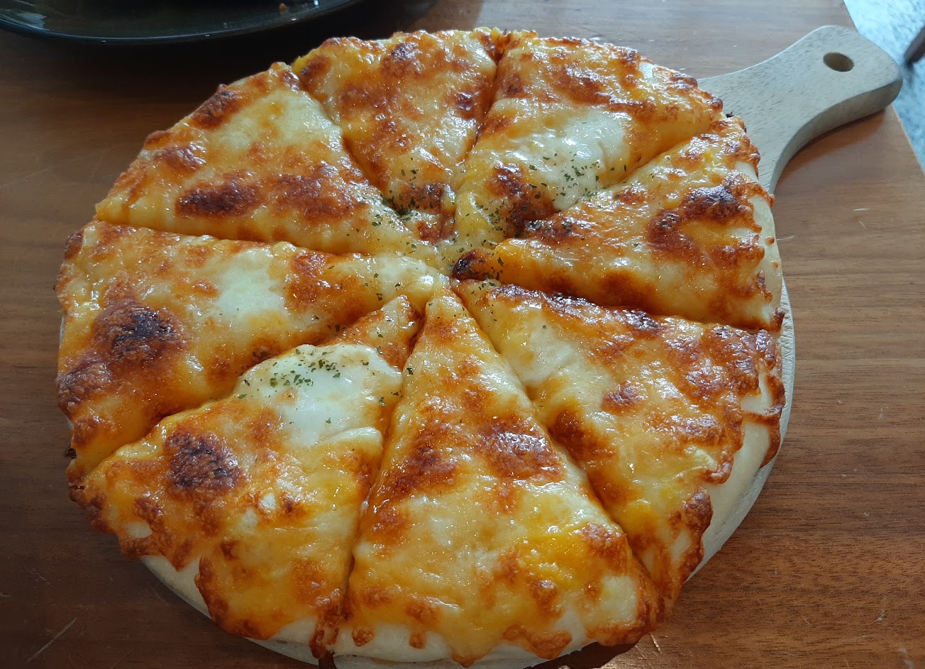 地瓜披薩也非常好吃, 熱熱的時候吃真的有在天堂的感覺欸!甜甜的 、地瓜也很香, 然後披薩餅皮也不厚~完全就是超讚的甜品…… 冷的時候吃也不錯 ,前面吃起來是甜品 ~後面吃起來鹹香鹹香的!這道也推推