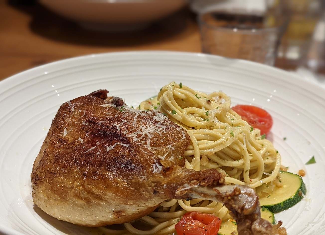 煎鴨腿蒜味義大利麵鴨肉香嫩多汁?