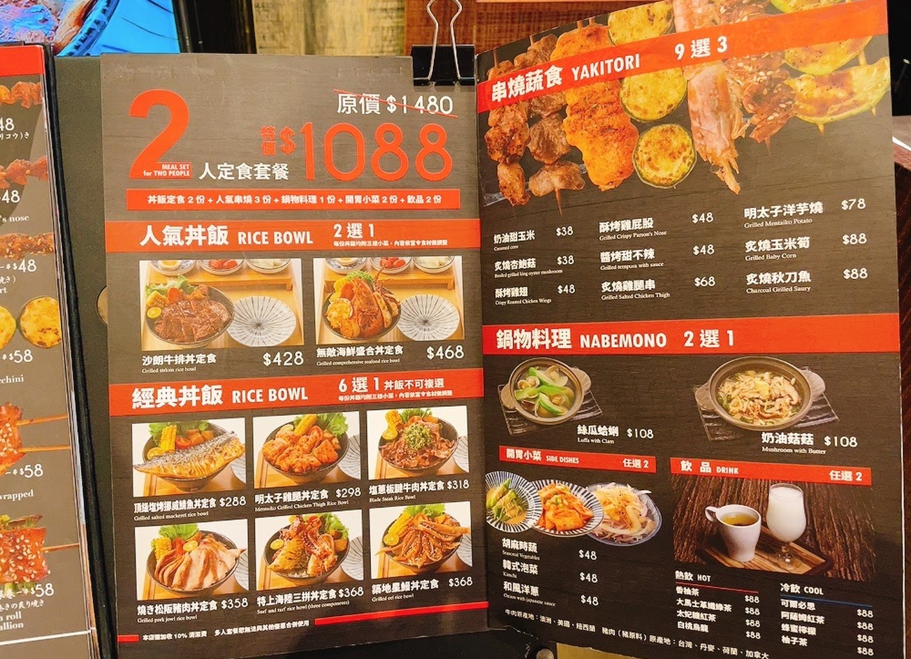 有各式丼飯、串燒套餐、啤酒
