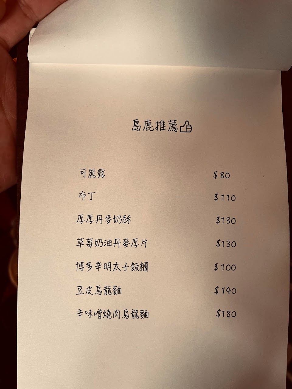 ?島鹿·喫茶 ??????菜單往後 收藏超級無敵久的日式喫茶店!!終於趁平日去肯定會有位子!但店內位子真的不多小小的,一樓三張兩人座,但跟隔壁好近,二樓也是一個很小的榻榻米空間,大概三桌,人數多真的不太建議來~好喜歡他們的風格,好像來到世外桃源一樣(蛤 ? 濃抹茶布丁150 推推 焙茶戚風蛋糕180 不推 可麗露80 推推好吃 羅馬咖啡150 酸味過重 宇治抹茶牛乳ft.牛奶瓶170 莖焙茶牛乳ft.牛奶瓶170 推推 冰島鹿鍋煮奶茶180 推推 甜點部分可以點布丁跟可麗露就好。可麗露外脆內軟是我喜歡的!!布丁抹茶味也是超濃郁好愛== 戚風過乾也沒什麼特色,我根本沒吃幾口,價位又高,不推。 飲料部分也都普普通通,但就是牛奶瓶系列好可愛!!拍照十分上相。最好喝的是鍋煮奶茶贏。 不提供訂位!所以平日去比較開心:) ?