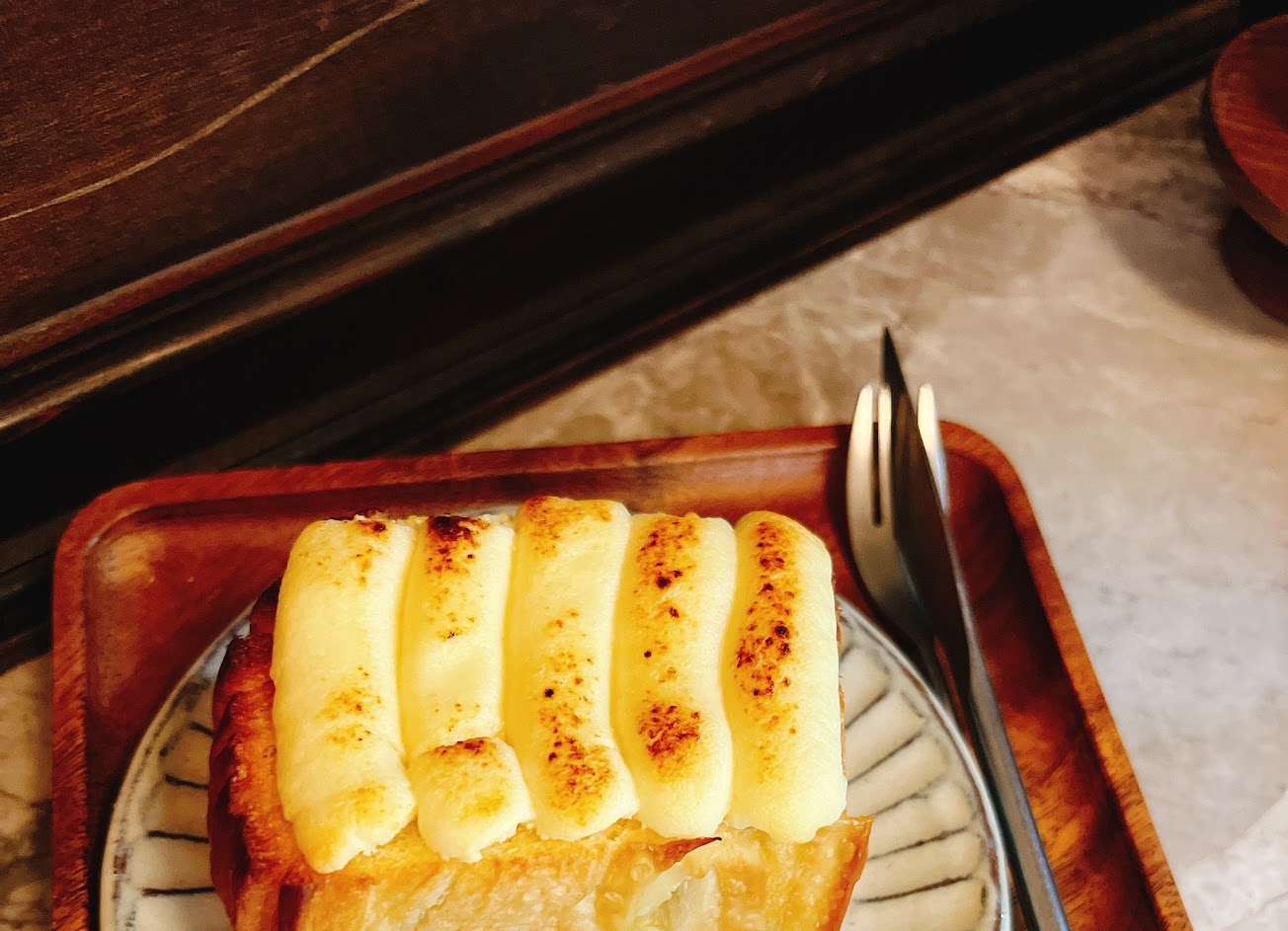 ?鹹食類 起司燒肉丹麥吐司? 小小的 外觀疊羅漢像塔一樣 吐司烤的酥酥的搭配燒肉還不錯