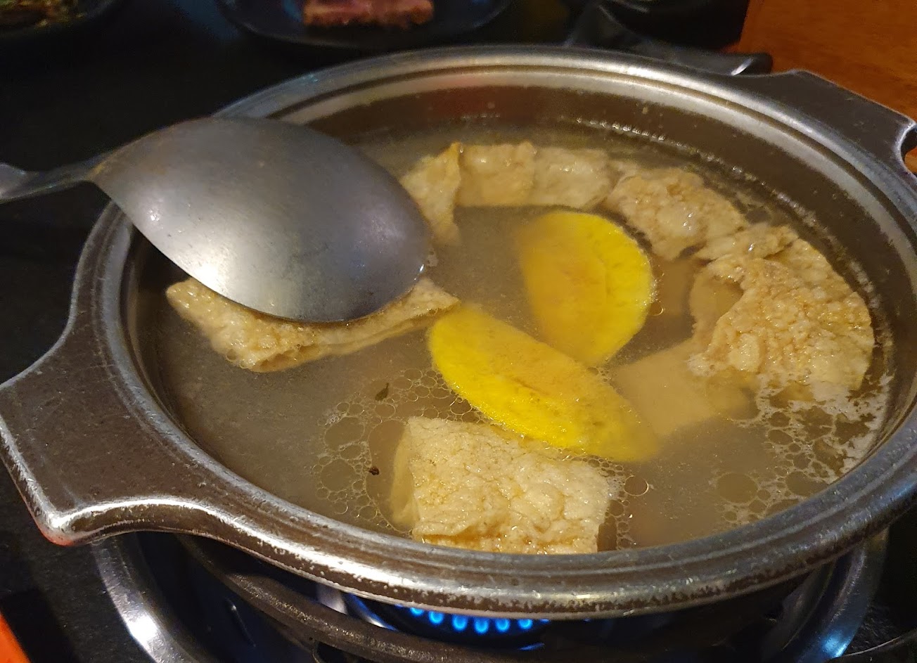 前兩年開始吃燒肉都會偏向到逐鹿炭火,原因很簡單,因為有天香鍋底,和不用剝殼的蝦和蛤蜊~⋯前兩天剛從日本出差回來,帶小孩來這用餐,不知道是不是將近3個月沒來,菜單上的牛小排沒了,然後用餐時間時間突然一下就被通知?剩最後10分鐘加點。⋯哈,現在的逐鹿炭火燒肉和田季燒肉一樣,口味普普+CP值得看當日用餐心情,因為真的還好。