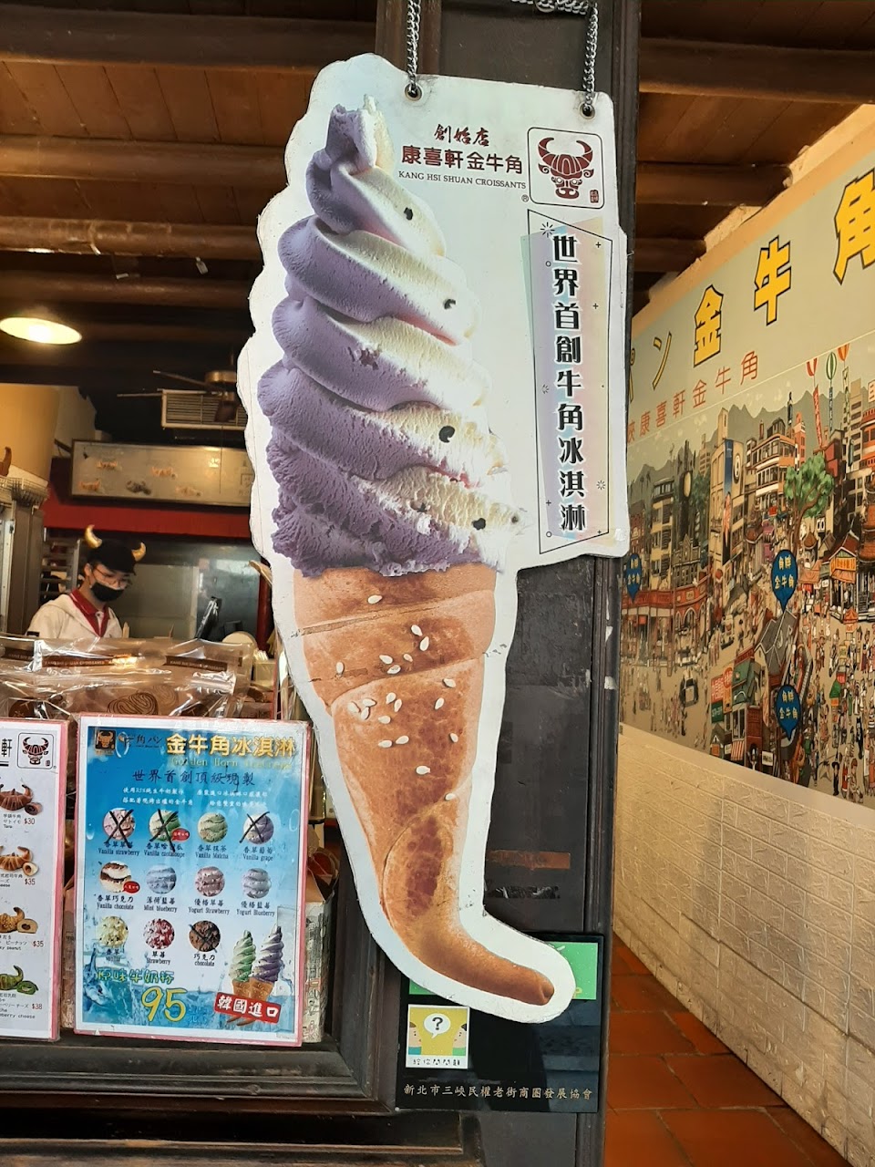 金牛角香氣還行,但覺得口感偏硬。金牛角冰淇淋算是一大特別,冰淇淋本身蠻好吃的,但金牛角杯就只是吃特色的功能,一支要95元不便宜。