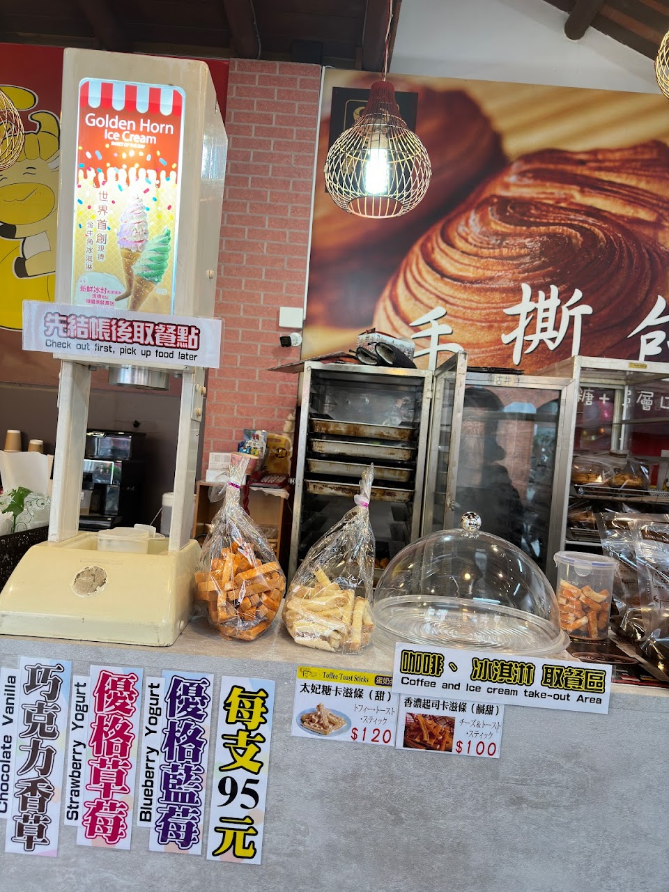 牛角冰淇淋好吃有特色,但是95元偏貴,尤其是看到其他顧客的很漂亮很擠得很高,結果自己到拿到的小小醜醜的,上前詢問店家也只表示因為擠到一般歪掉,所以沒辦法再擠,就沒有其他表示了……
