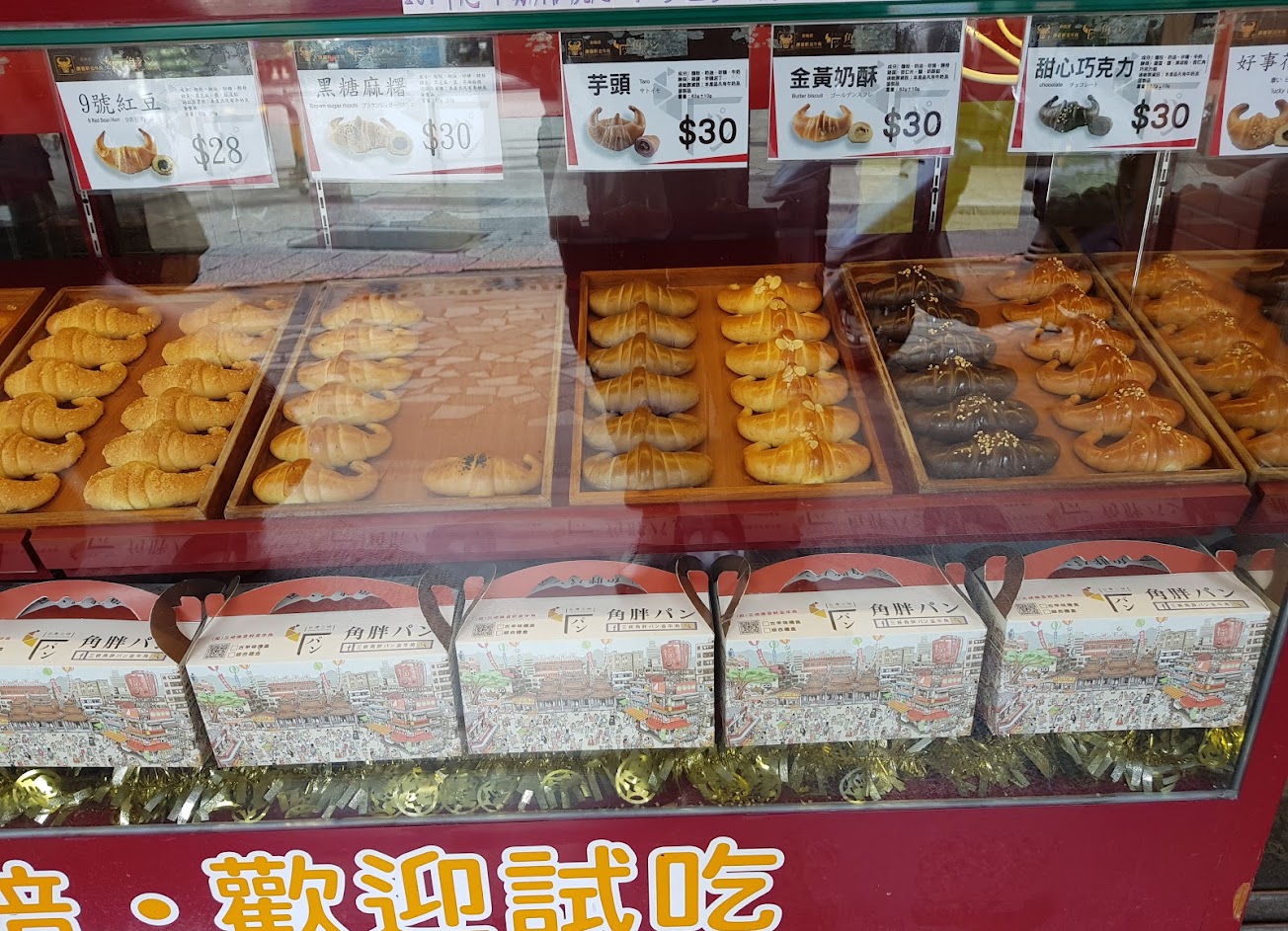 之前在慶城街一號的商場 你們分點展示櫃放著看起來色香味俱佳的牛角麵包 份量看起來不錯