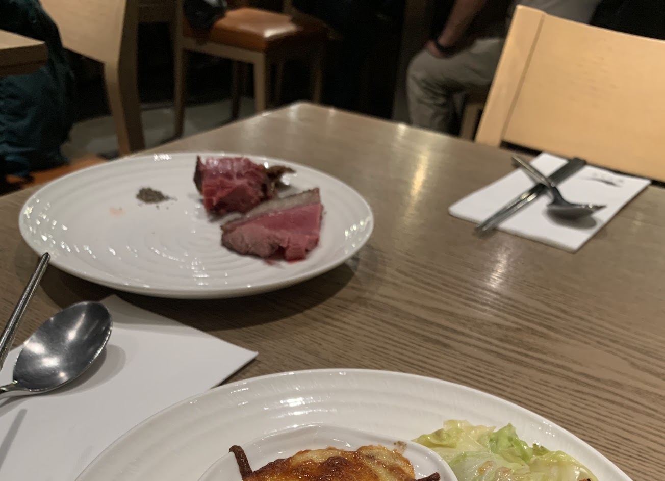 很好吃 但餐具補的速度有點慢,我那牛排刀在吃冰淇淋 服務 內用 餐點類型 其他 平均每人消費金額 $800-1,000 餐點:5 服務:4 氣氛:5 建議的餐點 鮮牛肉湯, 烤牛肉