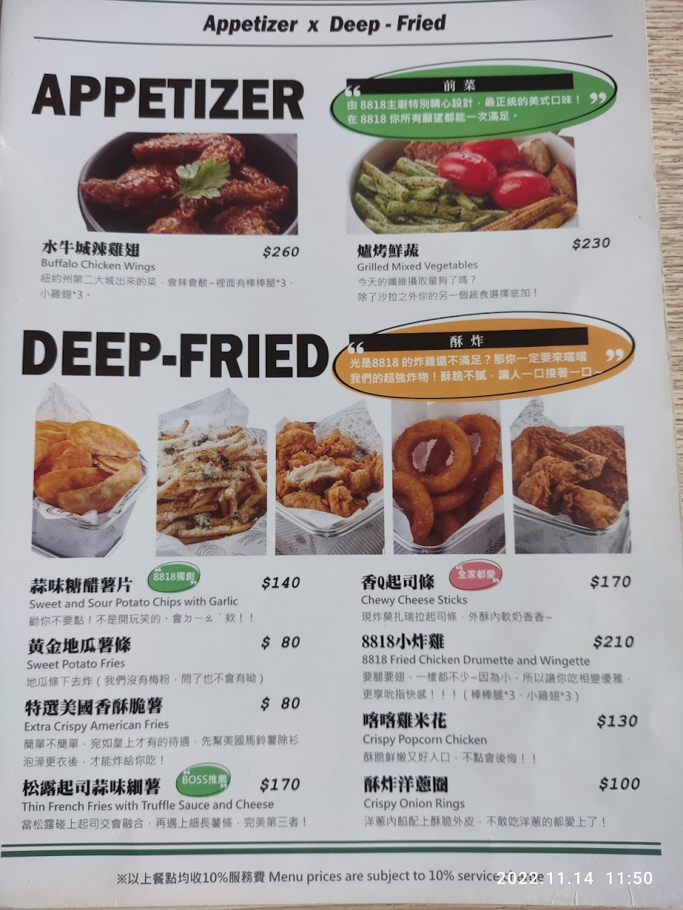 2024最新在地推薦餐廳的菜單_8818 Pizza Restaurant 比薩屋的菜單、圖片