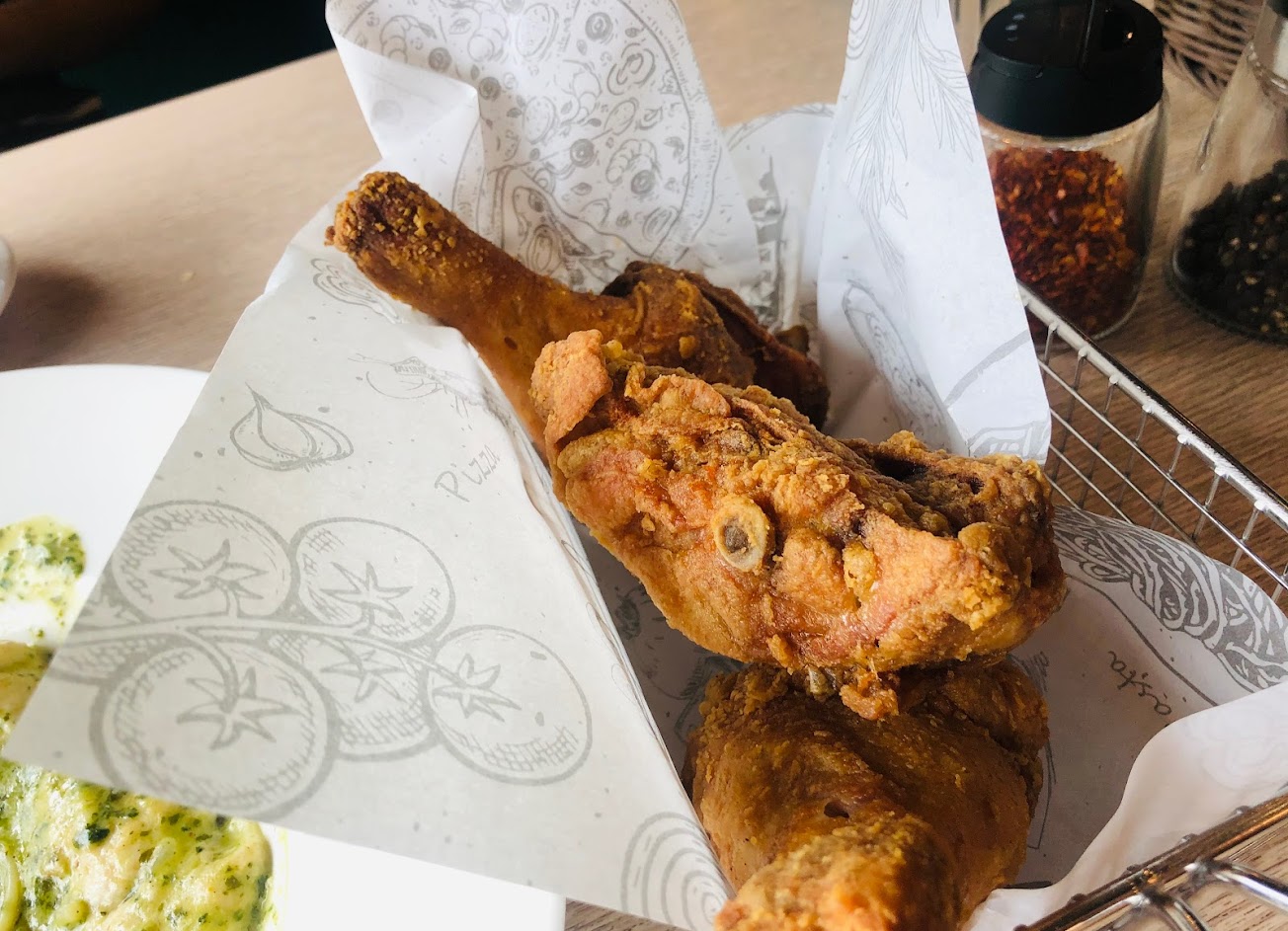 裝潢舊了點,但餐點絕對是好吃的,尤其是薄片披薩以及超推的炸雞。
