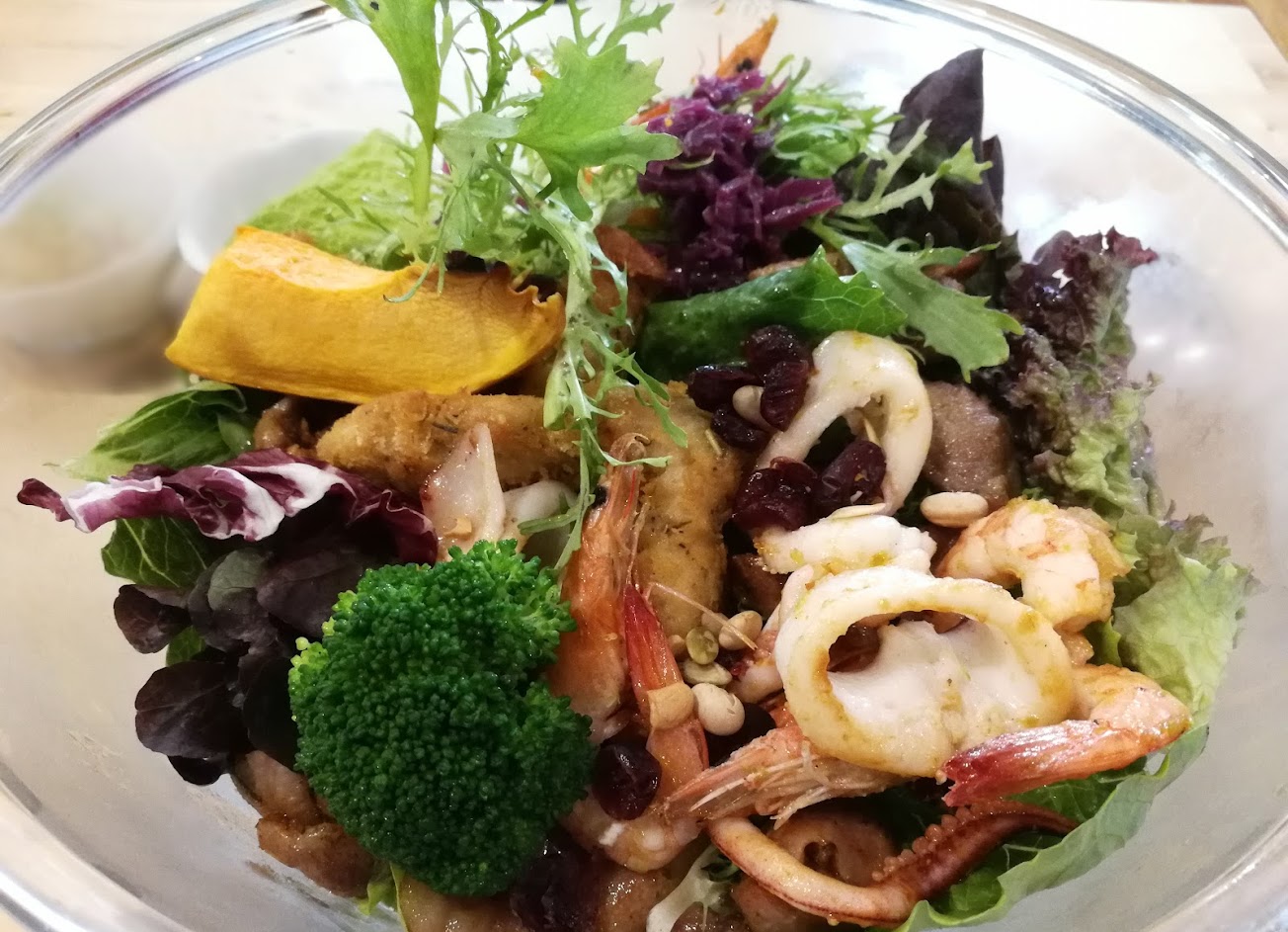 餐點沒有特別驚艷,下次或許換換別種料理;吃木碗沙拉的時候,食材放在深深的大碗裡,像在尋寶般倒是有趣。