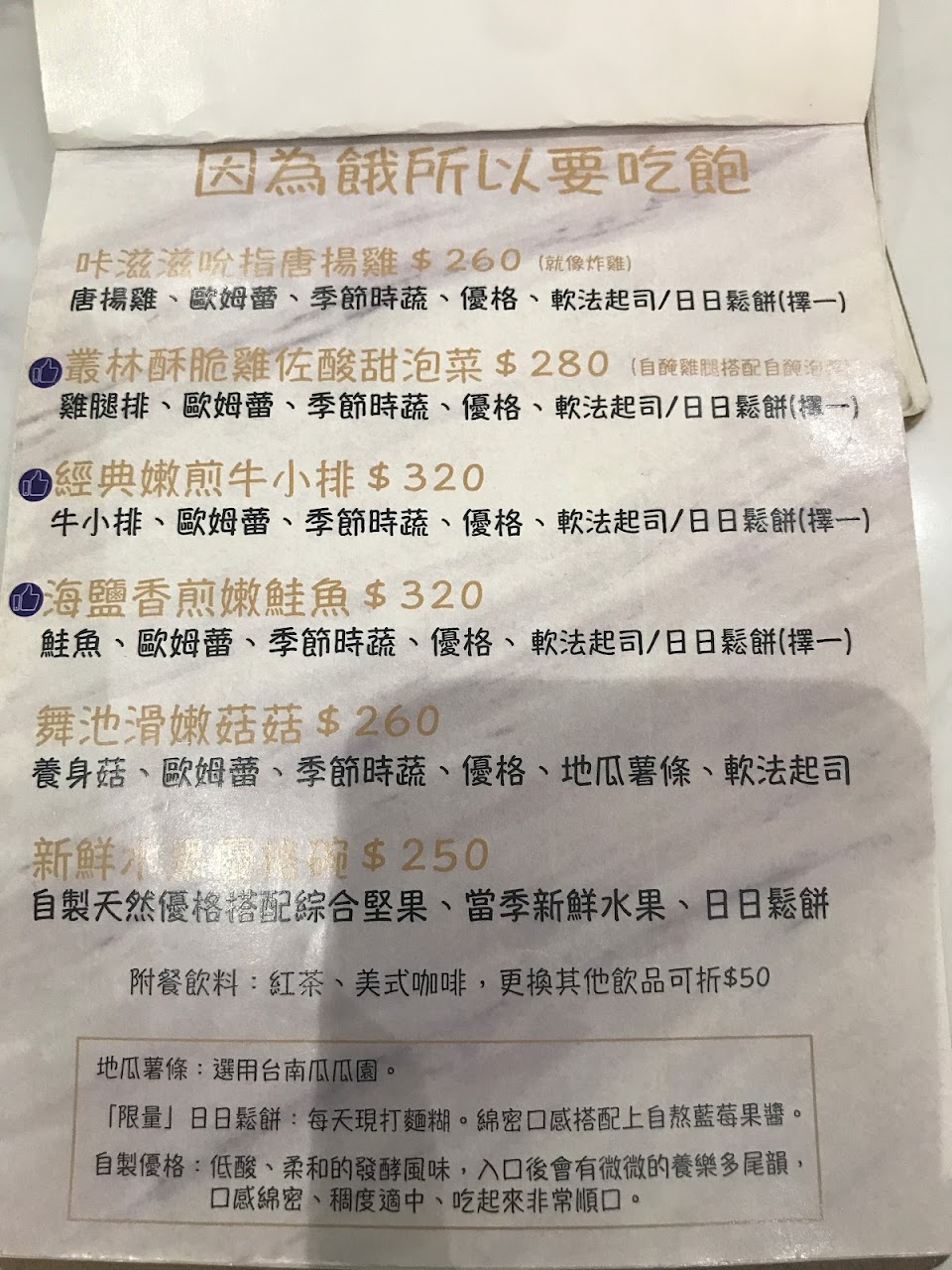 因為其中有餐點售完 兩個人就都點一樣的套餐 老闆娘還幫我們換不一樣口味的鬆餅?