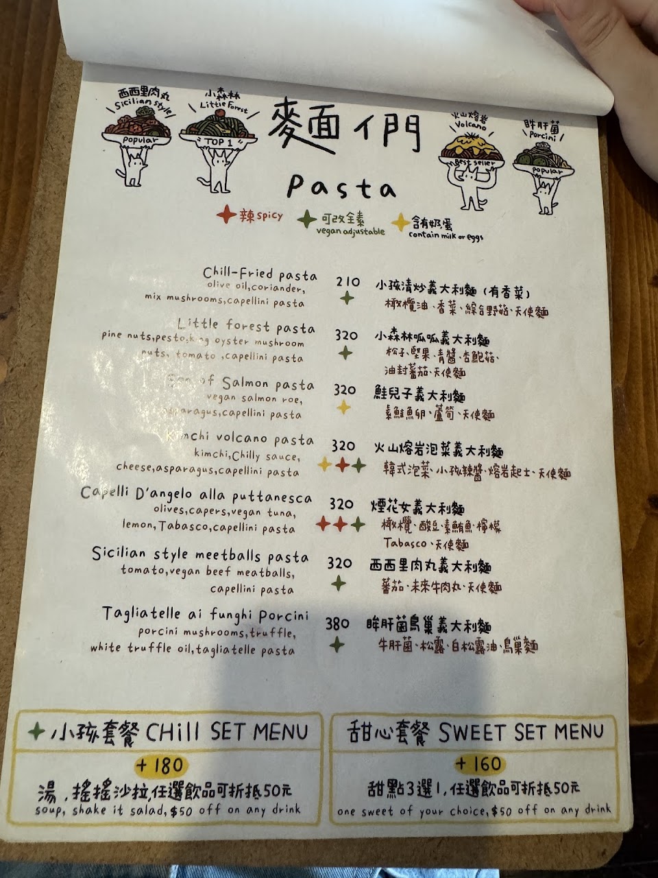 小森林青醬燉飯, 原味叔叔 薯條, 小孩泡菜豆包, 熔岩起司泡菜義大利麵