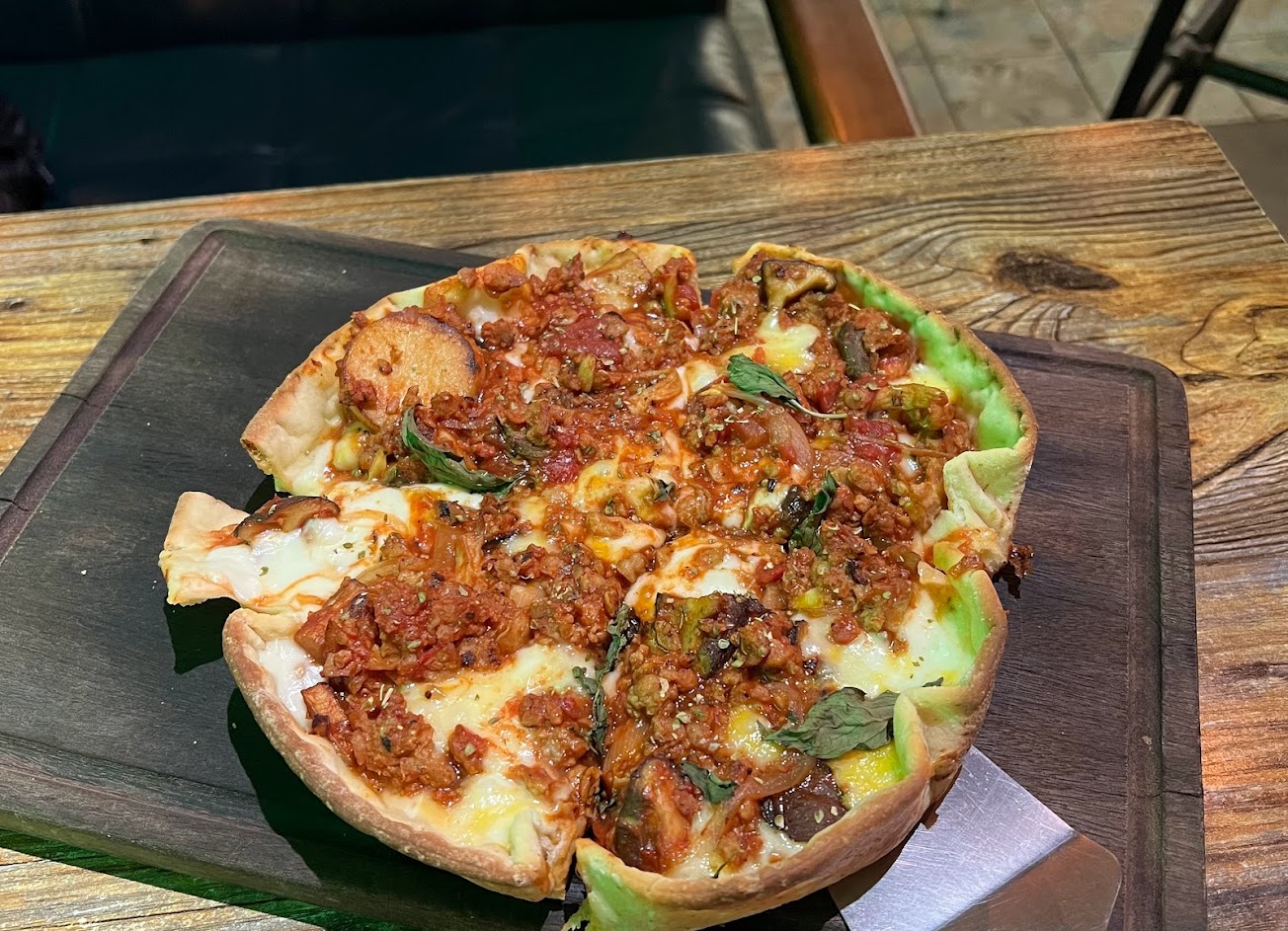 薄脆的餅皮加上瀑布般的起士🧀️吃不出來的未來肉,真是我吃過最強的深盤🍕!