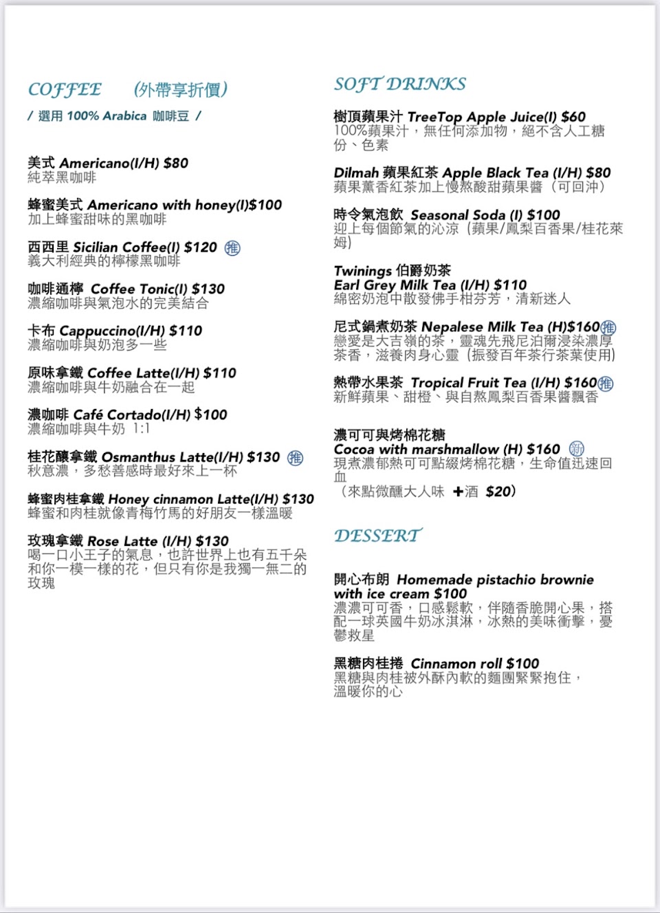 推薦咖啡。還有蛋糕。