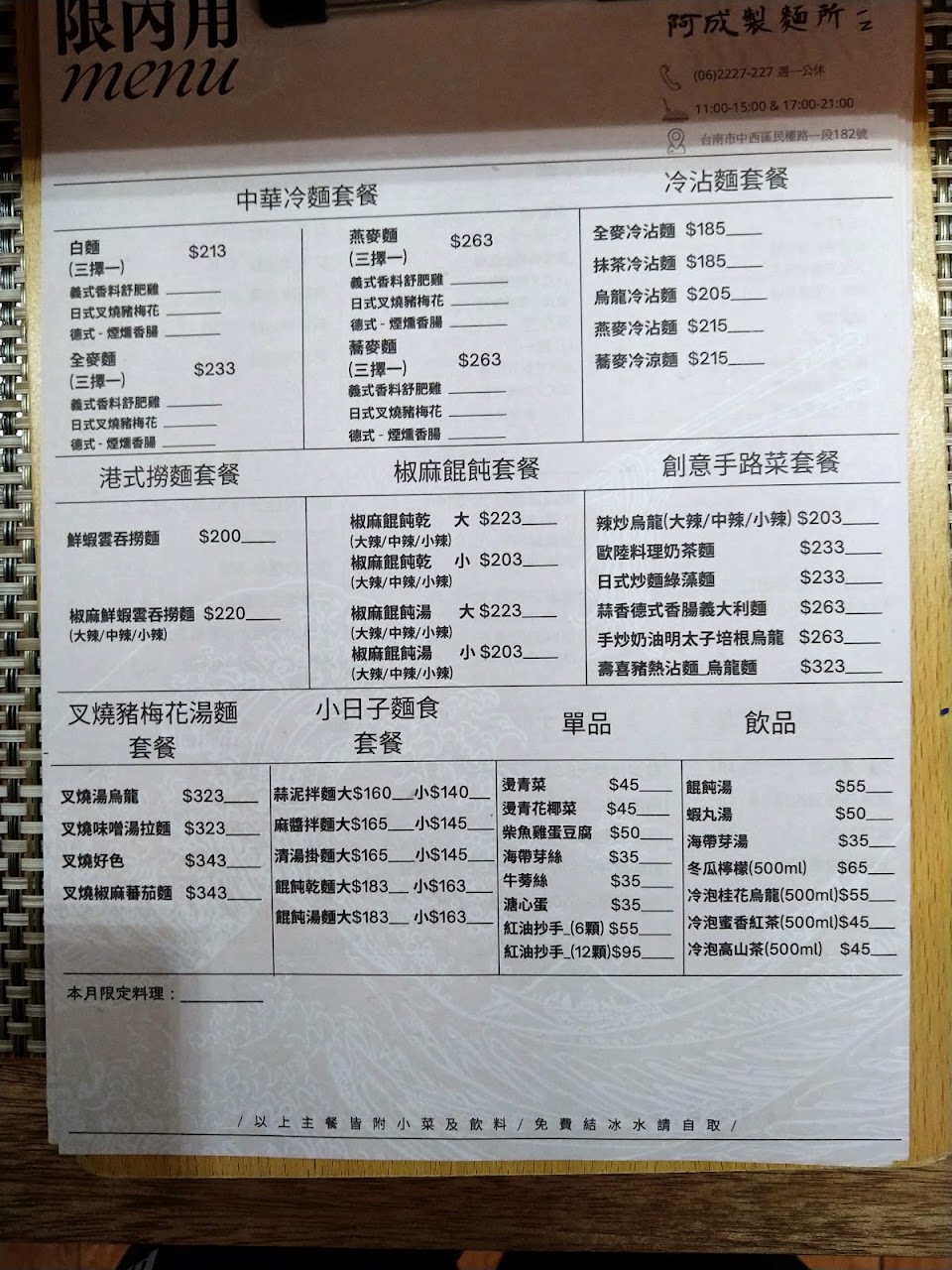 2024最新在地推薦餐廳的菜單_阿成製麵所(暫停業改裝中)的菜單、圖片