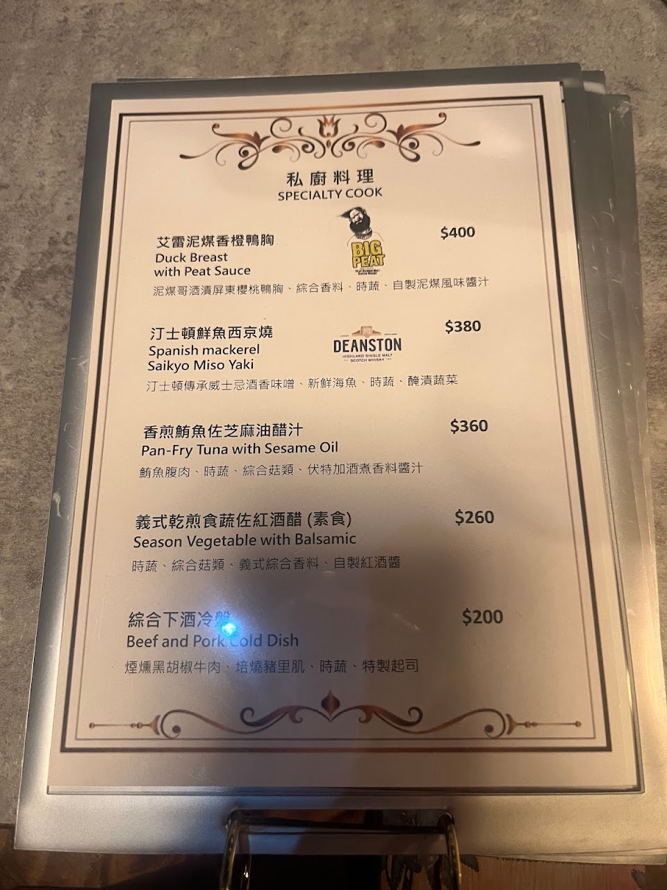 隱藏在巷子裡的酒吧,主要以威士忌為主,但是也有其他基酒的調酒,以及店家自己的特調,餐點也是非常有水準!