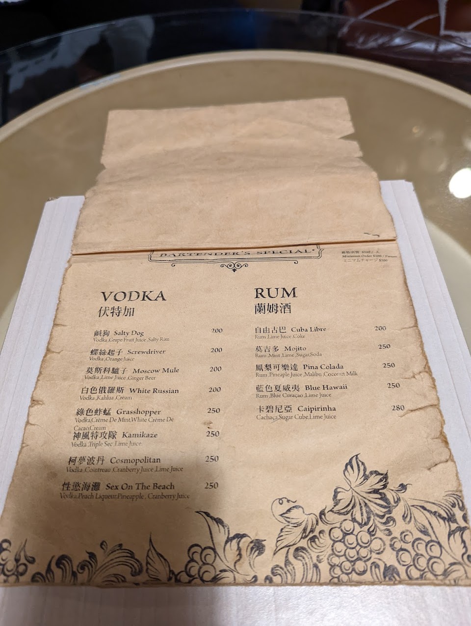點了一杯350的特調「夏」,以這個價位來說水準真的不OK,入口是偏化學的哈密瓜和香蕉的香精味,吞下去後又有很突兀的強烈酒精味,味道完全合不起來,不知道在喝什麼,同行友人點的另外兩杯也不是很好喝。