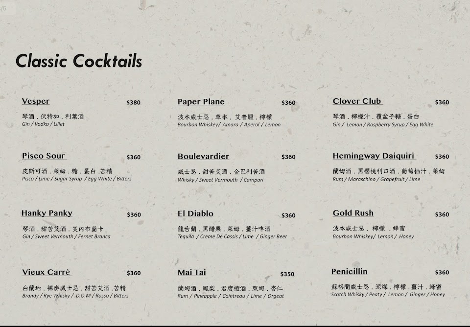 朋友點了秋水芙蓉,酒感偏重,喜歡重口味的會很喜歡,我點茶之本,茶之本上面有柚子風味的奶蓋,調酒的部分茶感表現得很明亮且融合,奶蓋的部分,由於我對於甜度的接受度極低,所以我下次就不點有奶蓋的調酒,但是整體設計的非常出色還是非常推薦的,我請bartender 幫我調一杯last word.也是超喜歡的